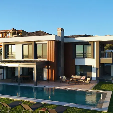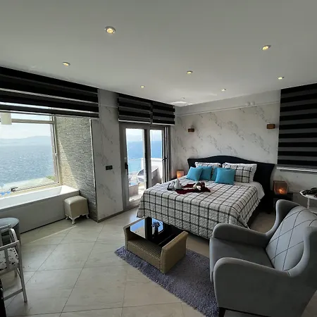 Featuring a seasonal outdoor swimming pool for guests to unwind, the 9-room Mavi Panorama Villa Cesme is perfectly located merely a 6-minute walk from Wall Aquariums Home. Offering a Jacuzzi, this 6-bedroom villa is 4.6 km from the Pirlanta Beach.